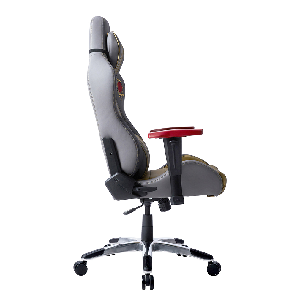 ラオウモデルは鎧をまとったラオウと、その玉座をデザインソースとし、ゴールドxグレーのツートンに赤をアクセントとして利かせた威厳に溢れる配色パターンを採用しています。背面には拳王軍のエンブレムを加工し、着座時の後ろ姿にも拳王の風格を与えます。