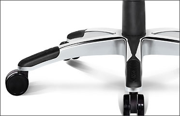 取り外し可能なランバーサポート/ヘッドレスト、最大耐荷重150kgのDIN規格CLASS4ガスシリンダー、フラットに近いポジションまで調整可能なリクライニング機構、堅牢なメタルフレーム構造など、好評を博しているAKRacingゲーミングチェアのコンフォート機能はそのまま継承しています。さらに車輪部分にPU(ポリウレタン)素材が使われたフローリングの床面に傷がつきづらいタイプのホイールが採用されており、転がるときの騒音がほとんどなく安定感があります。