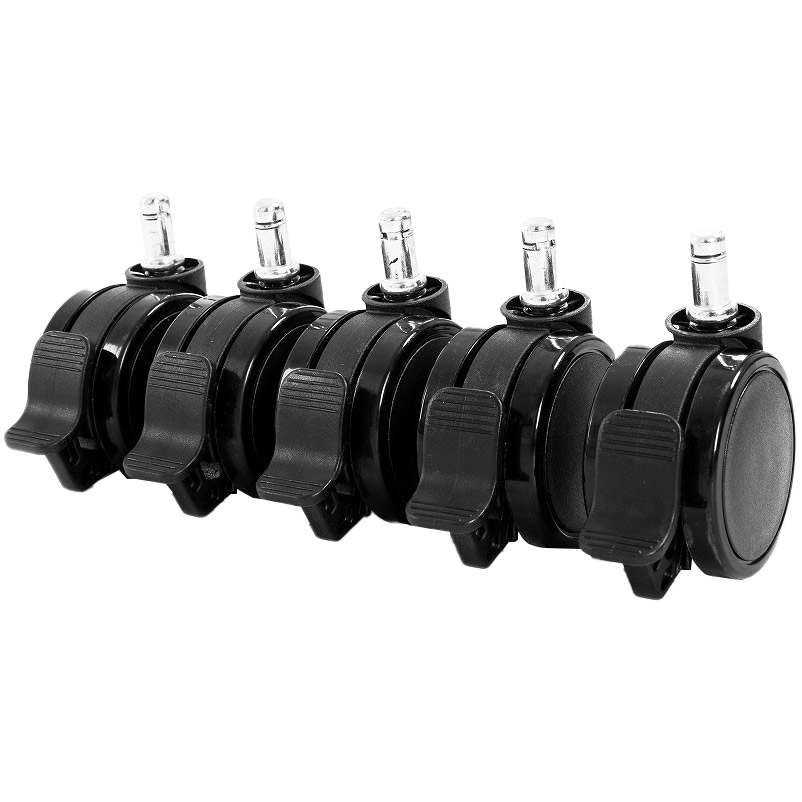 AKRacingチェア用の交換用キャスターです。フローリングの床に傷のつきにくいPU(ポリウレタン)製の双輪キャスターです。キャスターを固定するロック機能つき。